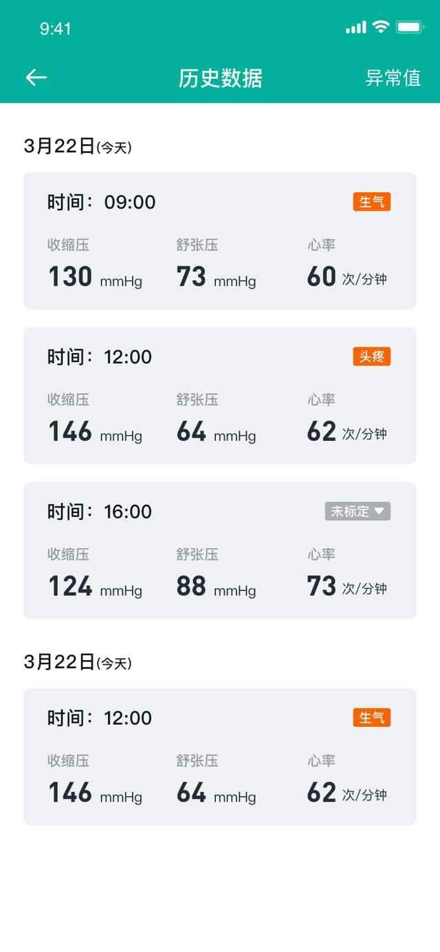 健康测试:患者可以通过设备在APP上进行健康检测。检测数据实时同步云端。